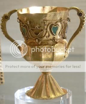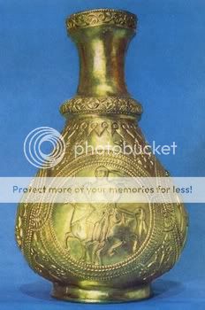 Kho báu Nagyszentmiklós, được phát hiện vào năm 1791 tại thị trấn Nagyszentmiklós (nay là Sânnicolau Mare, Romania), là bộ sưu tập vô giá gồm 23 chiếc bình bằng vàng thế kỷ 10. 8. Pietroasele -Romania ![]()