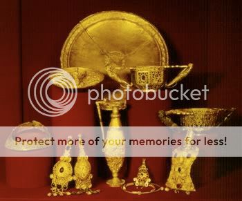 Danh sách kho báu quý giá của nhân loại sẽ không đầy đủ nếu không nhắc đến kho tàng của Tutankhamen. Được tìm thấy trong chính lăng mộ của ông vào năm 1922 bởi nhà khảo cổ học có tên Howard Carter. Vật nổi tiếng nhất trong kho báu này là chiếc mặt nạ, ngoài ra, quan tài bằng vàng lưu giữ linh cữu của vị vua danh tiếng này và chiếc ngai vàng cũng là một phần đáng giá trong kho báu. 5. Pereshchepina - Bulgary ![]()